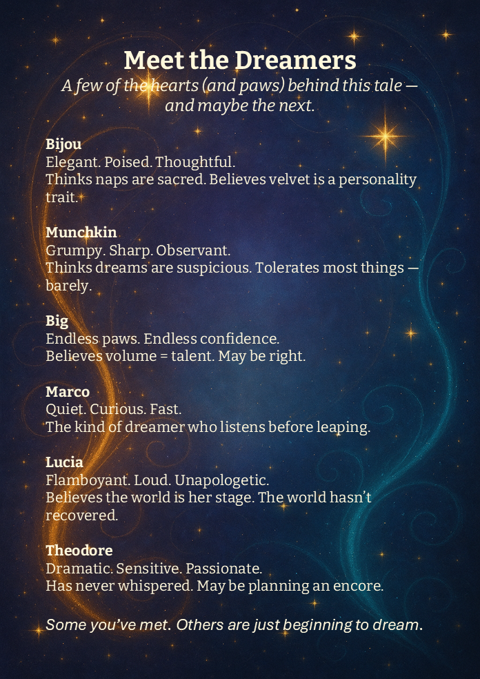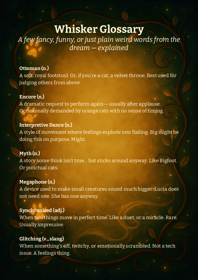 💛 Visit Whisker Workshop 🎨 Looking for the Emotion Cards? ✨ Welcome to Your Dreamer’s CornerA place to wander through wonder, sketch what you see, and meet the paws behind every dream. 🖍 Download Drawing Page 🧭 Download Journal Page 💭 Download Thought Prompts 📚 Download Glossary 🪶 Download Cat Wisdom 🐾 Download Cast List 🌟 Download Life Lessons